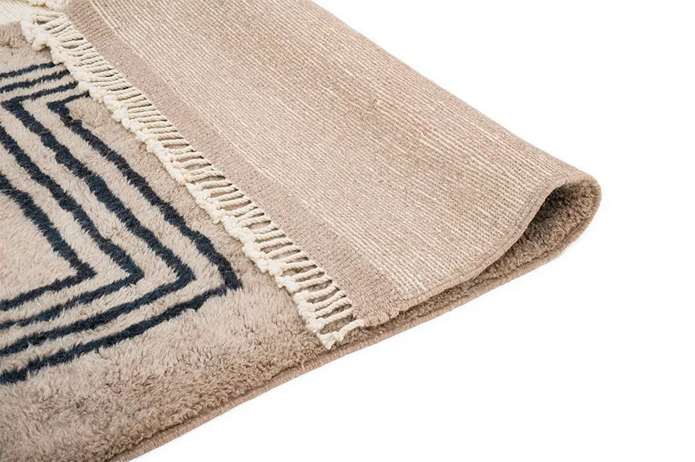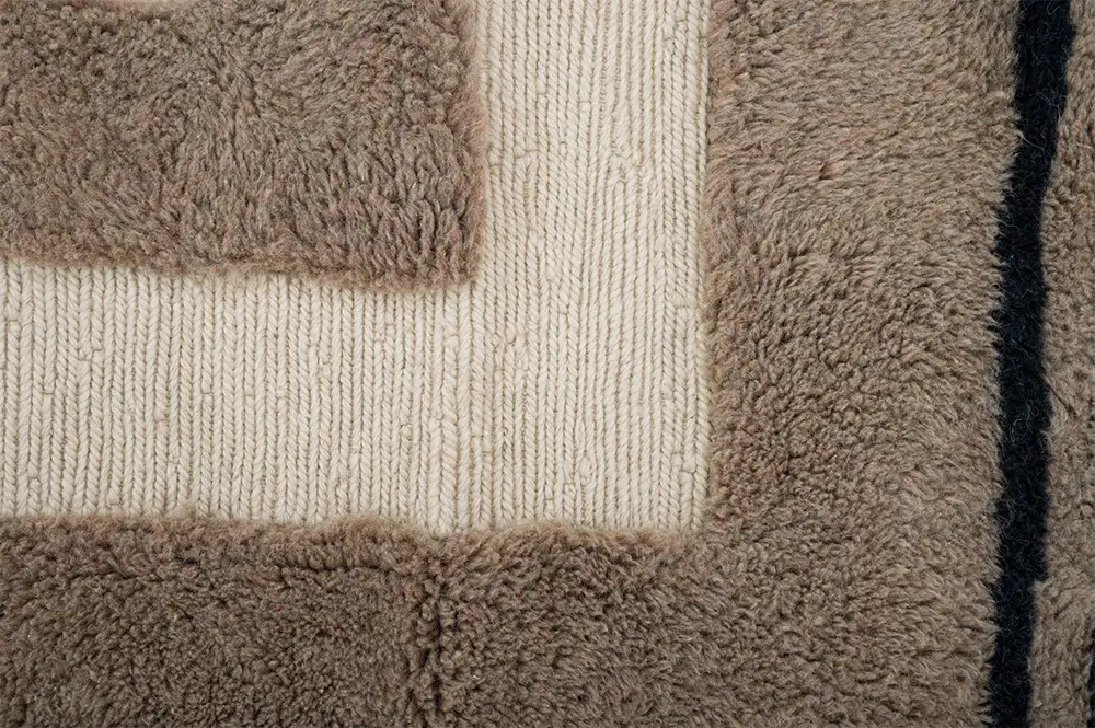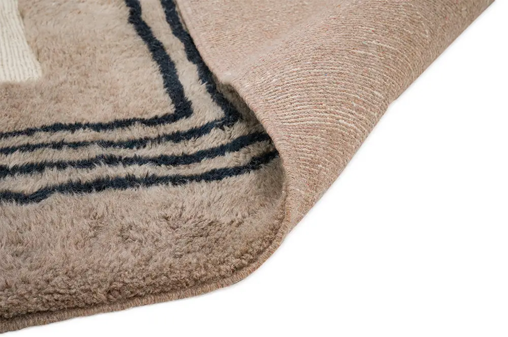 Elegant hand-knotted wool rug in Simply Taupe accented with Ivory and Charcoal Black geometric lines. The bold, angular design draws the eye, offering a harmonious balance of refinement and character. Perfect for enhancing a variety of interiors, it brings a sophisticated and timeless appeal that elevates any living space with ease.