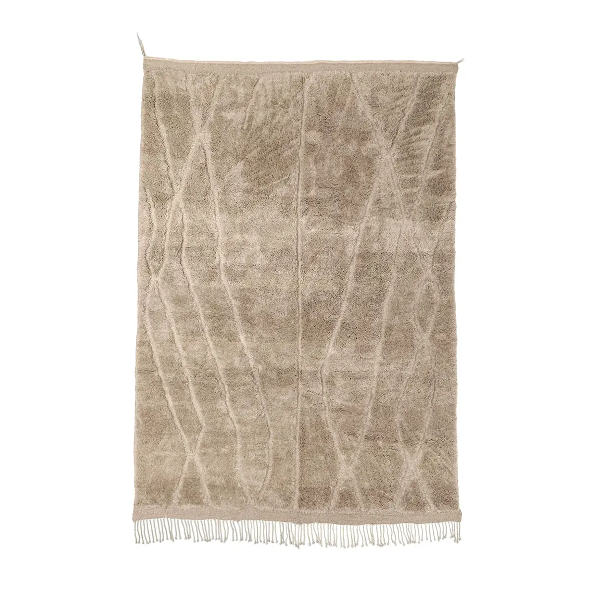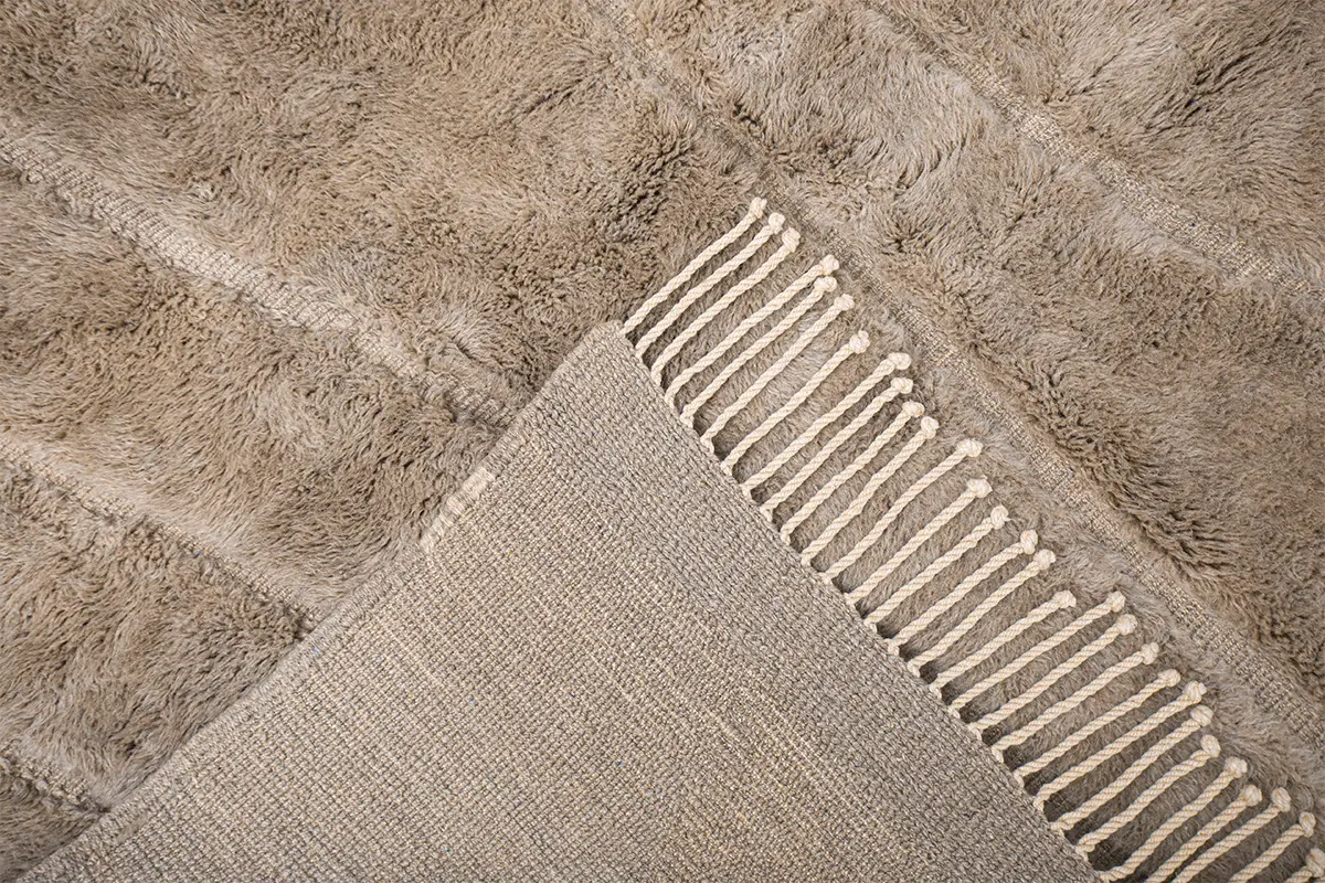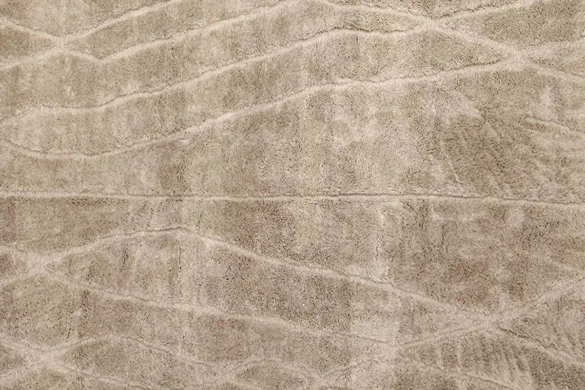 Monochromatic hand-knotted wool rug in Taupe, adorned with a subtle organic line pattern that adds quiet elegance and depth. Its minimalist design exudes timeless charm, making it a versatile centerpiece for any space.