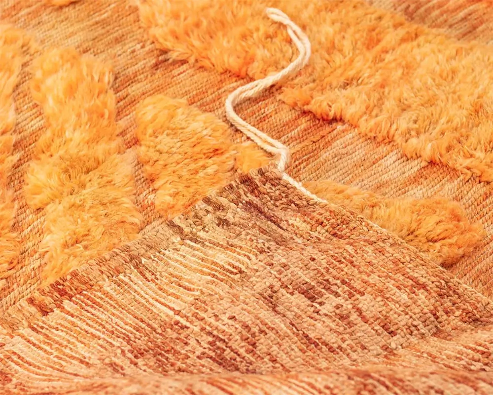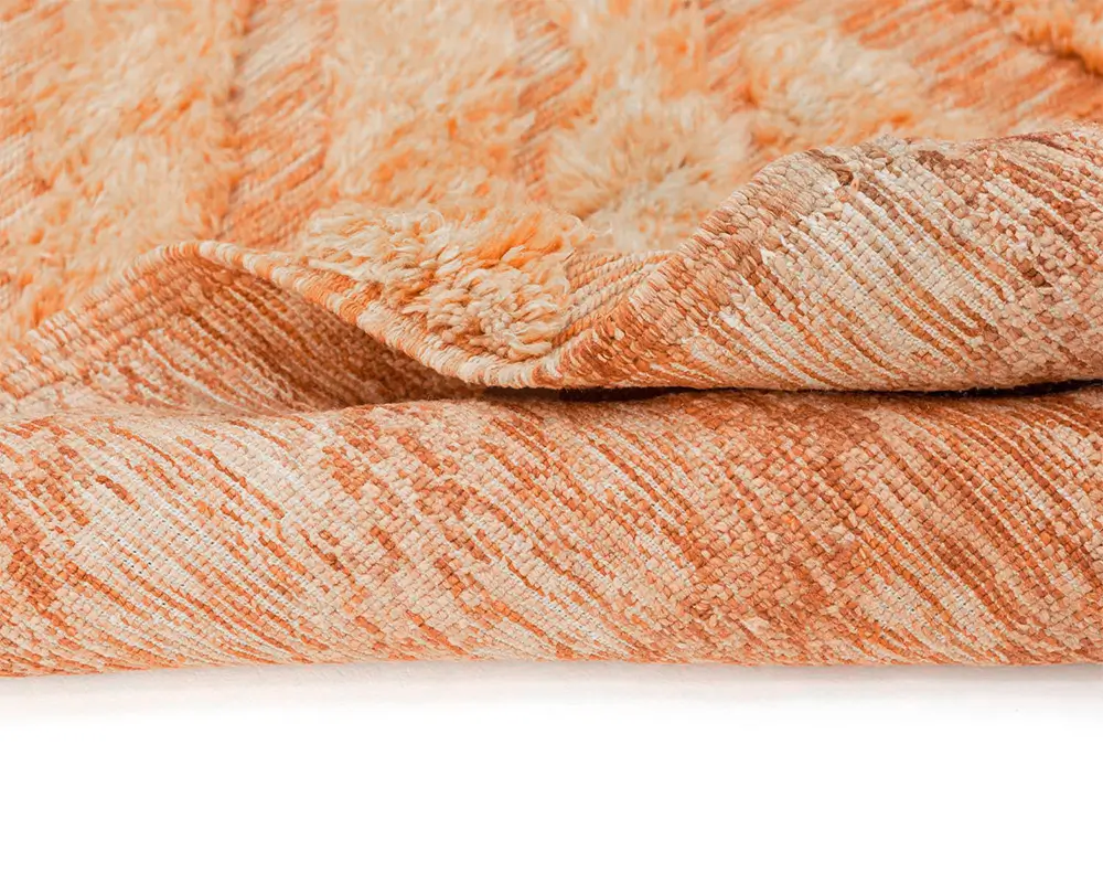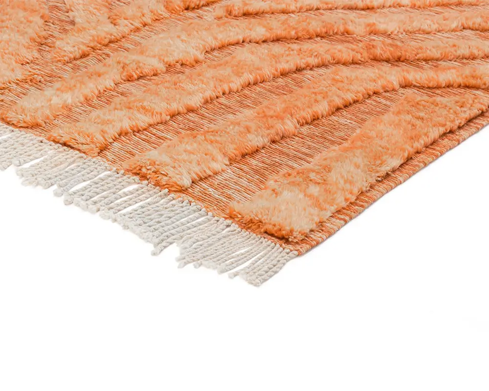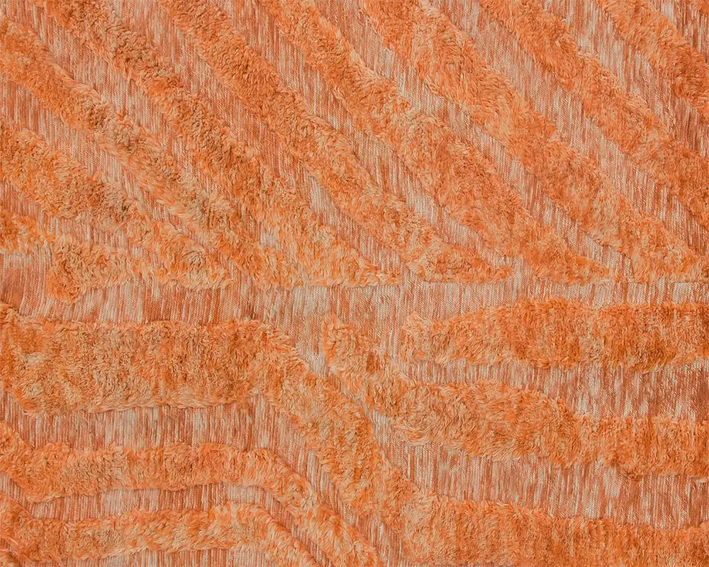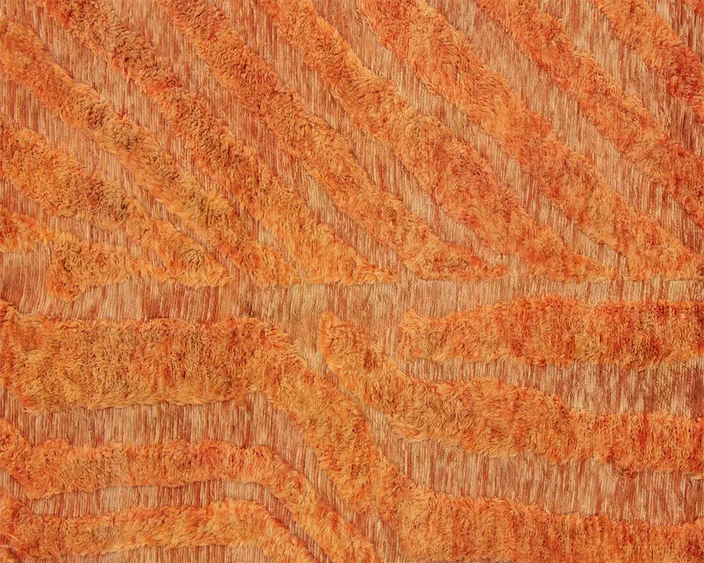 Luxurious hand-knotted rug in vibrant Tiger Orange, featuring a dynamic, textured pattern with natural wool highlights. Perfect for adding warmth and artisanal craftsmanship to any room.