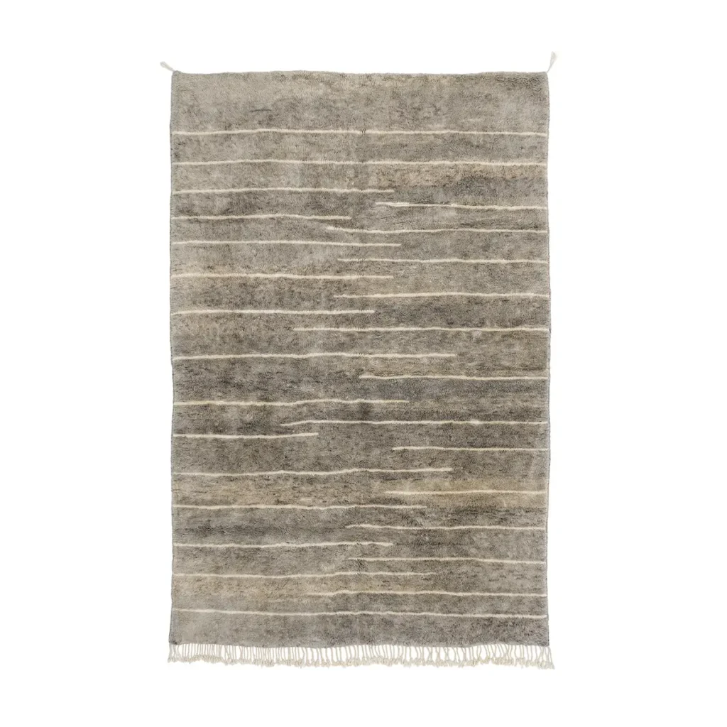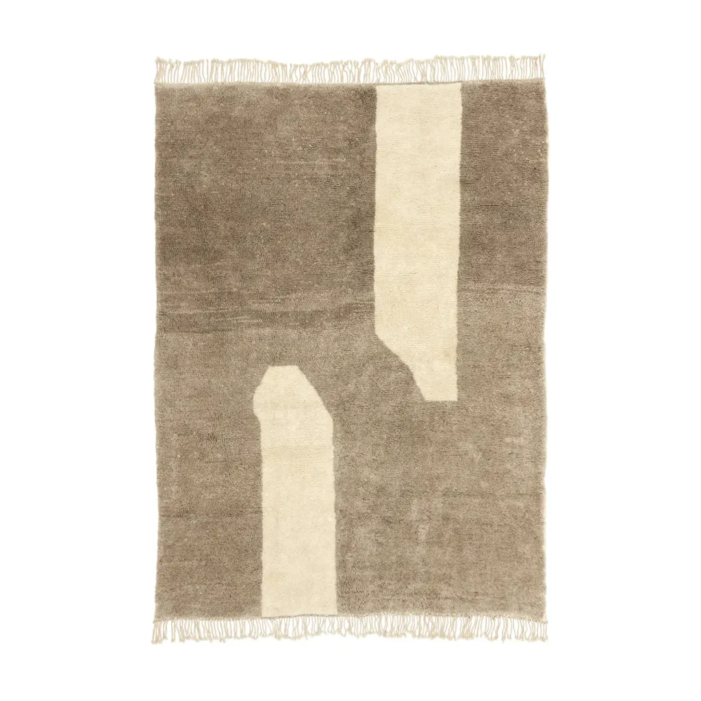 Discover an artisanal rug featuring abstract zigzag patterns in shades of brown and gray. Hand-knotted for quality, this piece adds a touch of elegance to any room with its authentic Moroccan inspiration.