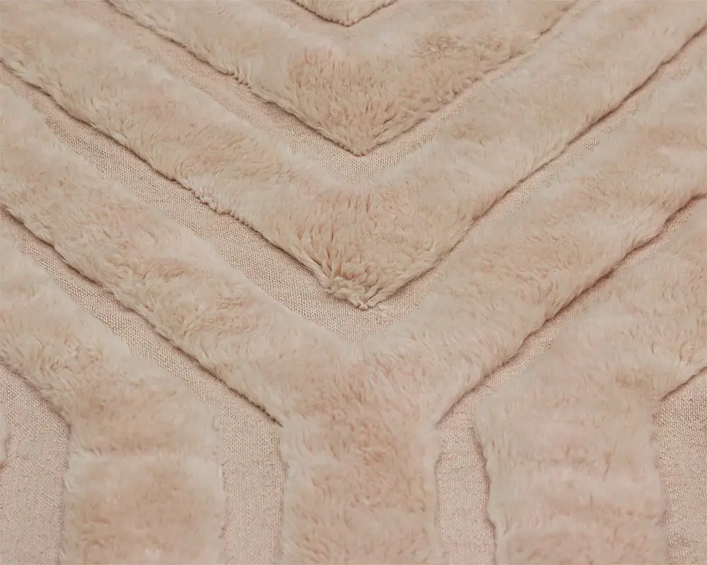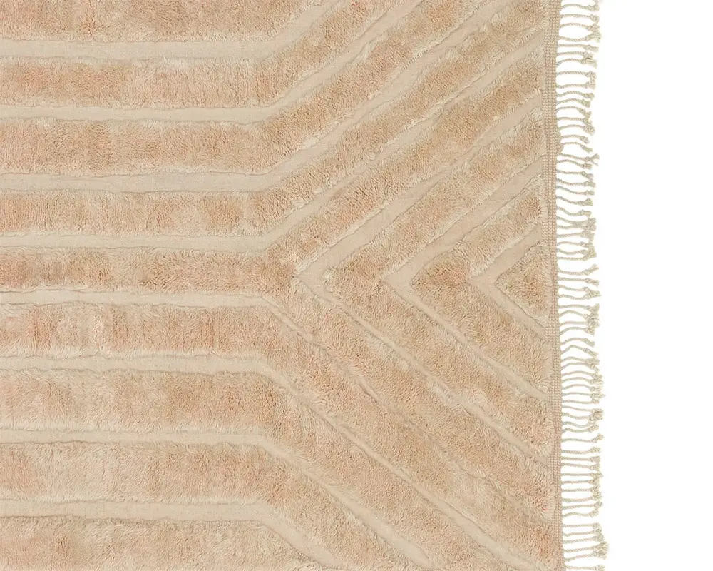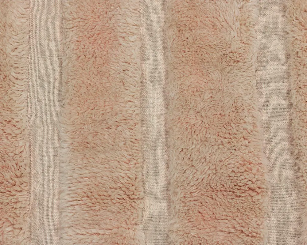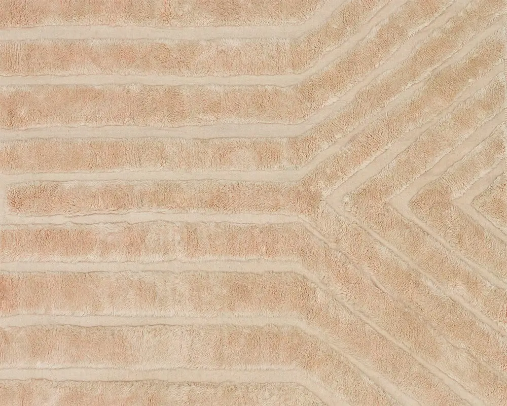 Delicate, hand-knotted rug in gentle Apricot Cream, featuring a linear, geometric design that exudes simplicity and elegance. Ideal for adding a subtle, contemporary flair to a serene living space.