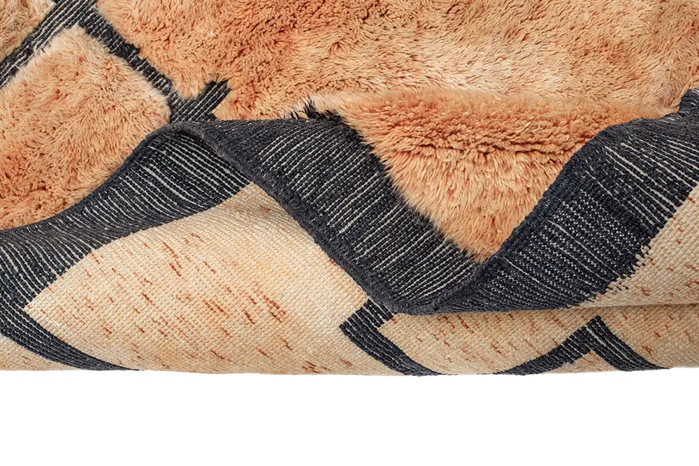 Sophisticated hand-knotted wool rug featuring an abstract grid design in rich shades of Burnt Orange and Charcoal. This bold piece offers a modern artistic flair, perfect for enhancing contemporary spaces.