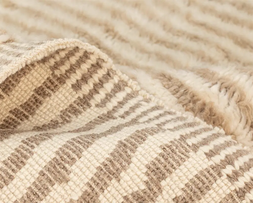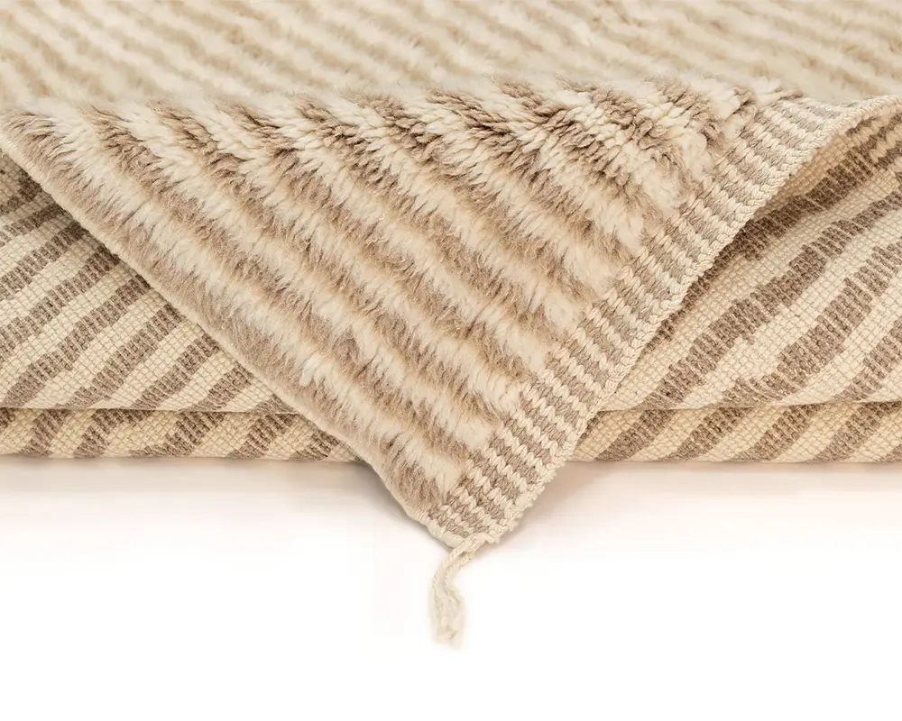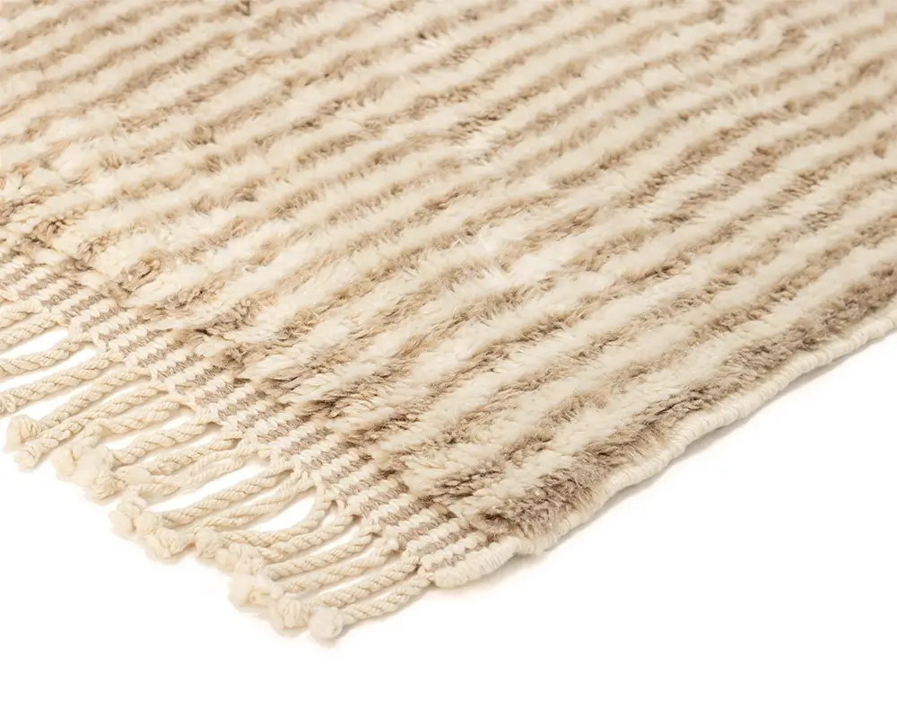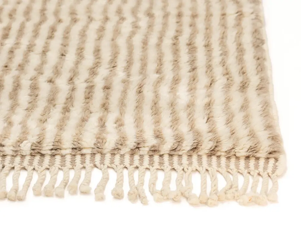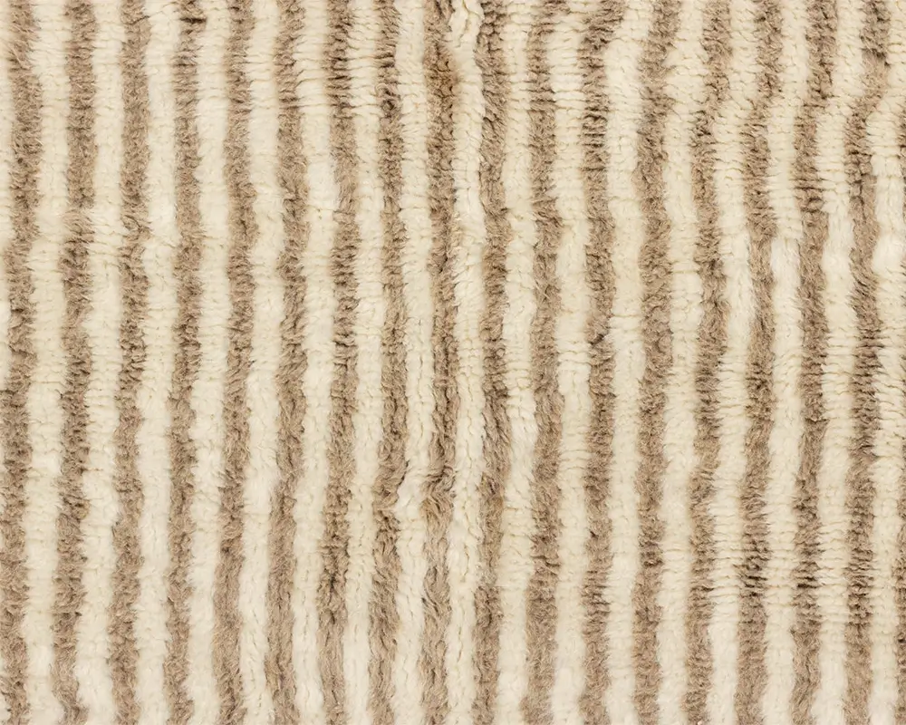 Elegant, hand-knotted wool rug with dual-tone Natural Wool and Misty Taupe stripes, offering a textured, plush feel, perfect for contemporary or traditional spaces. Durable, cozy, and elegantly understated.