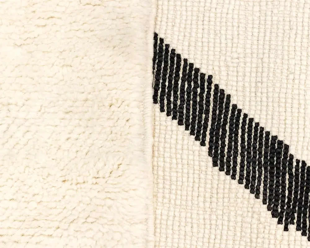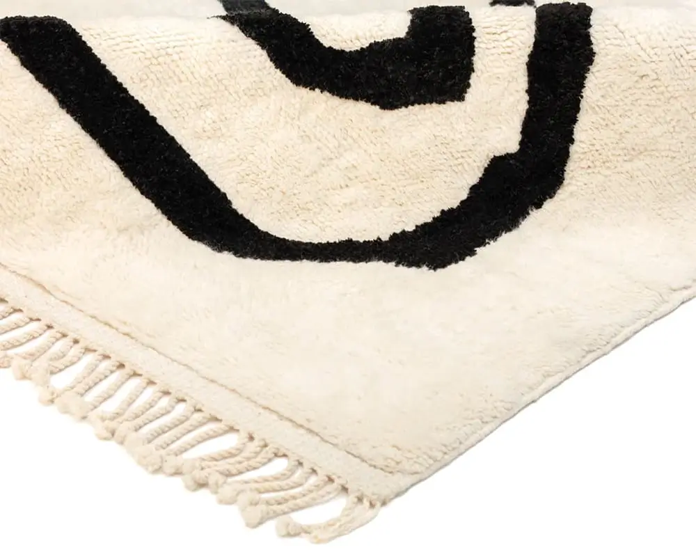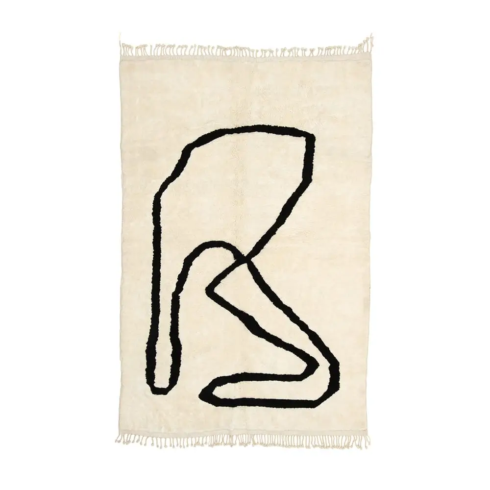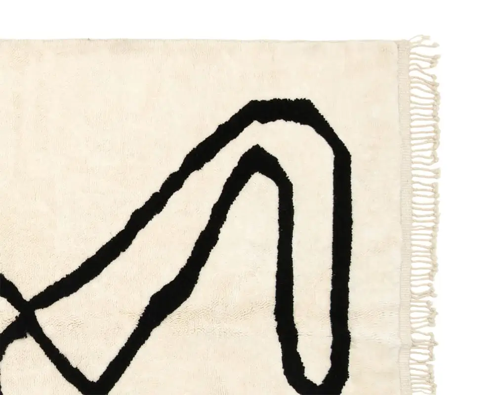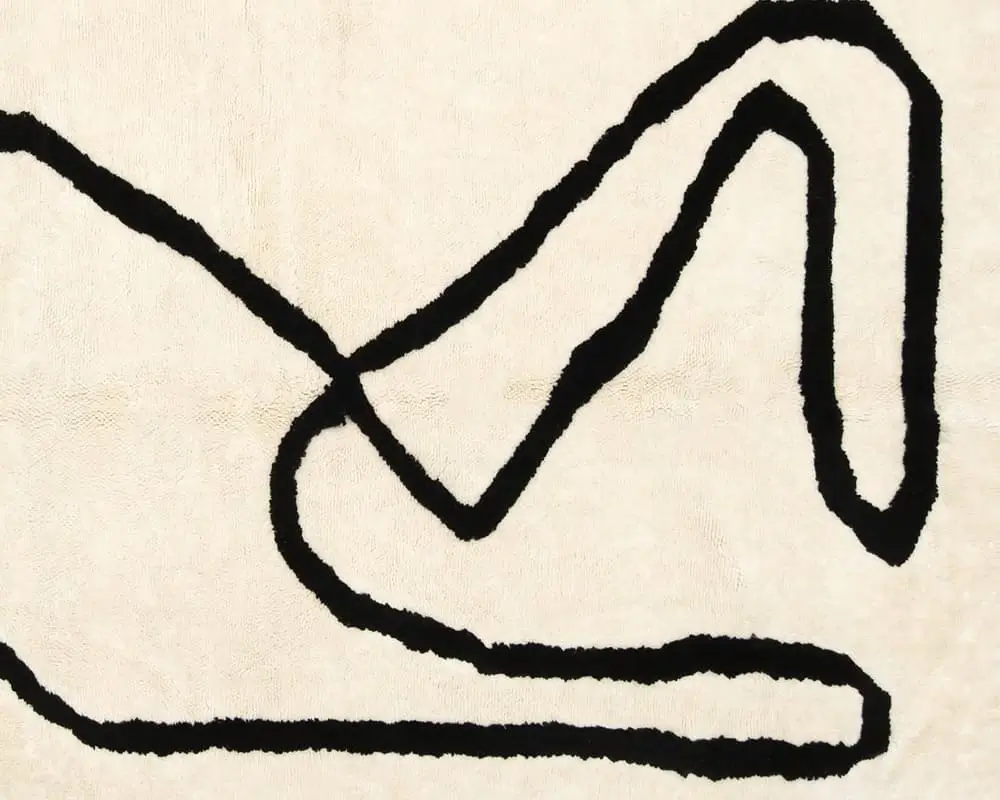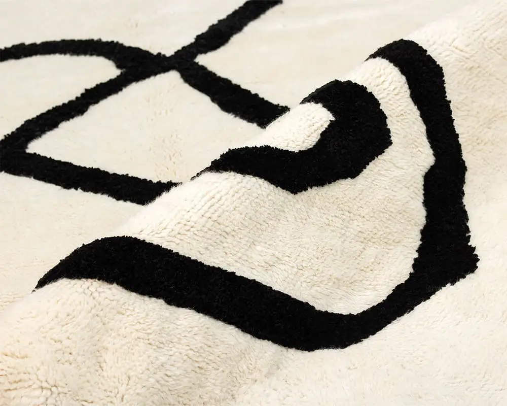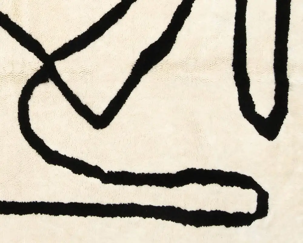 Stunning hand-knotted wool rug with an Ivory background and Midnight Black abstract line woven in cotton thread, offering a minimalist yet striking statement piece for any interior design approach.