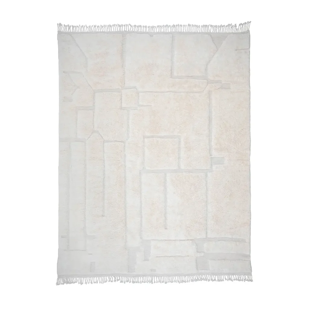 Discover a luxury Moroccan rug in Light Taupe featuring a captivating diamond pattern and elegant fringed edges. This hand-knotted masterpiece adds sophistication to any space.