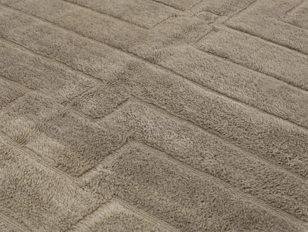 Close-up view of a soft, cream-colored, fluffy rug with a plush texture.