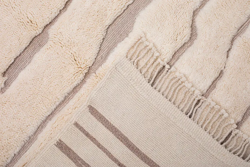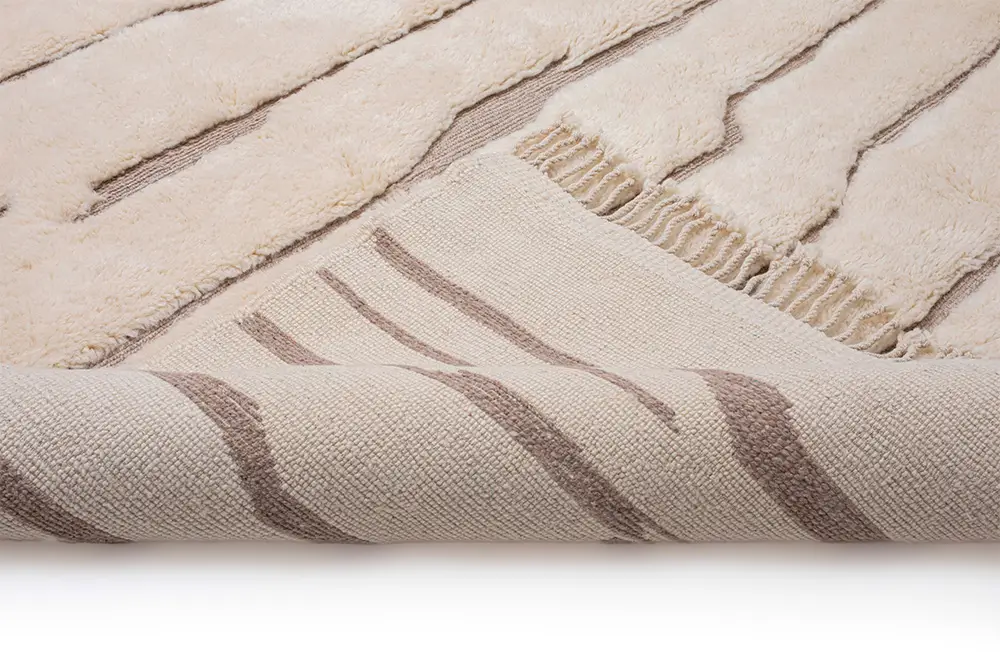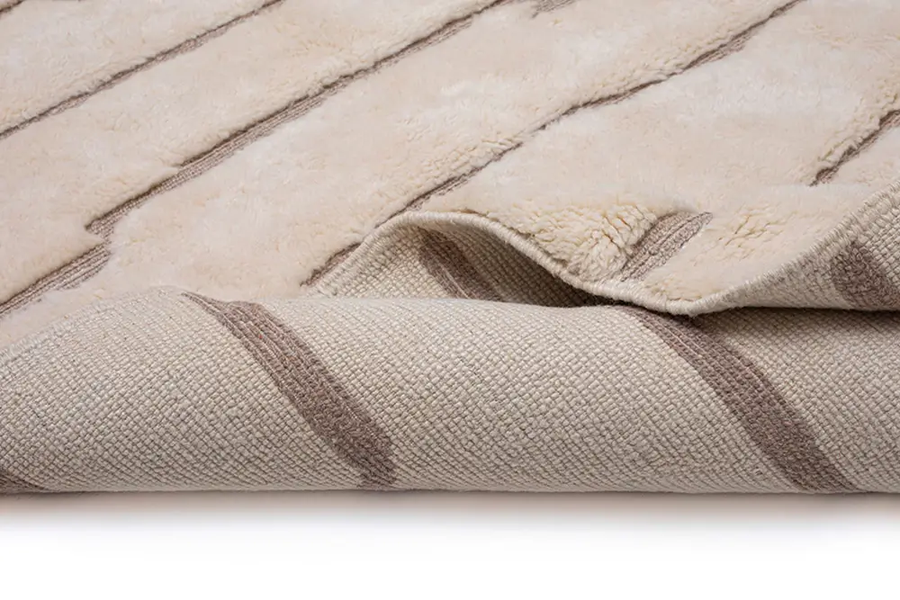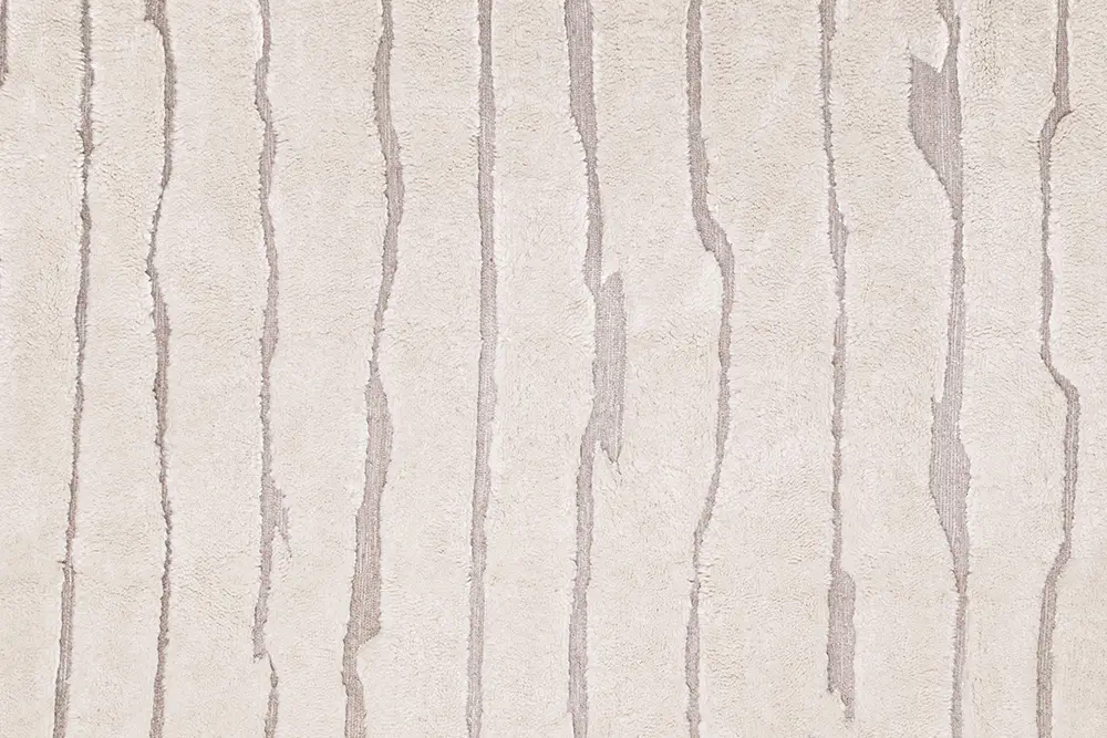 Elegant and timeless, this hand-knotted wool rug in Ivory is accented with a subtle organic Light Taupe line pattern that adds quiet sophistication and depth. Its minimalist design makes it a refined addition to any room.