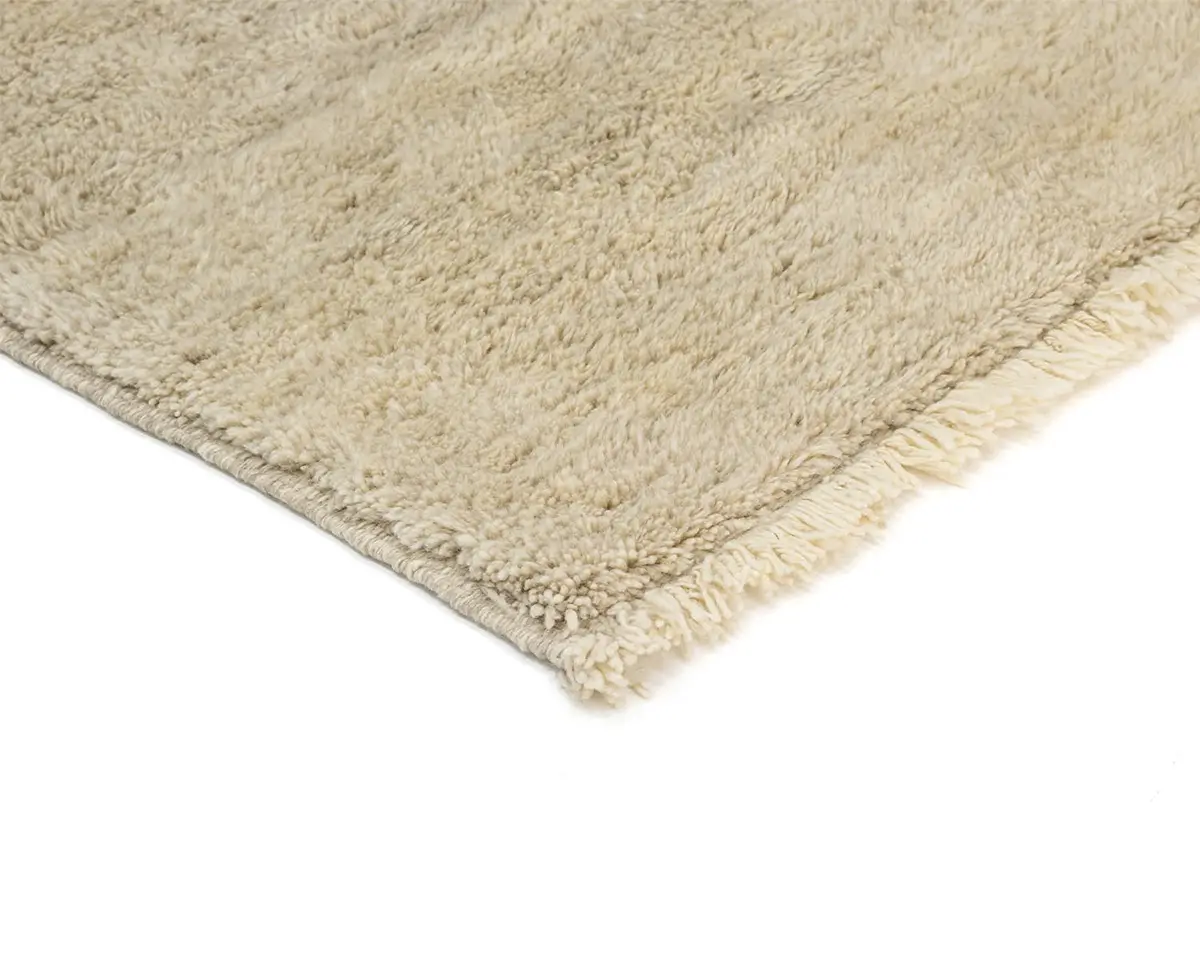 Plush hand-knotted wool rug blending Ivory and Taupe hues for a serene, neutral palette, offering a luxuriously soft texture that invites comfort and warmth into any space. Perfect for creating a cozy atmosphere.