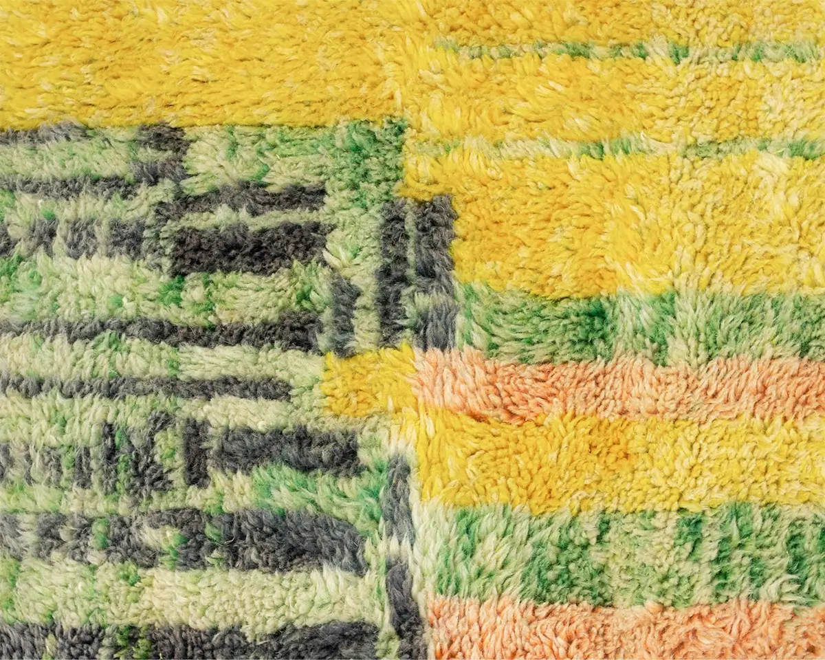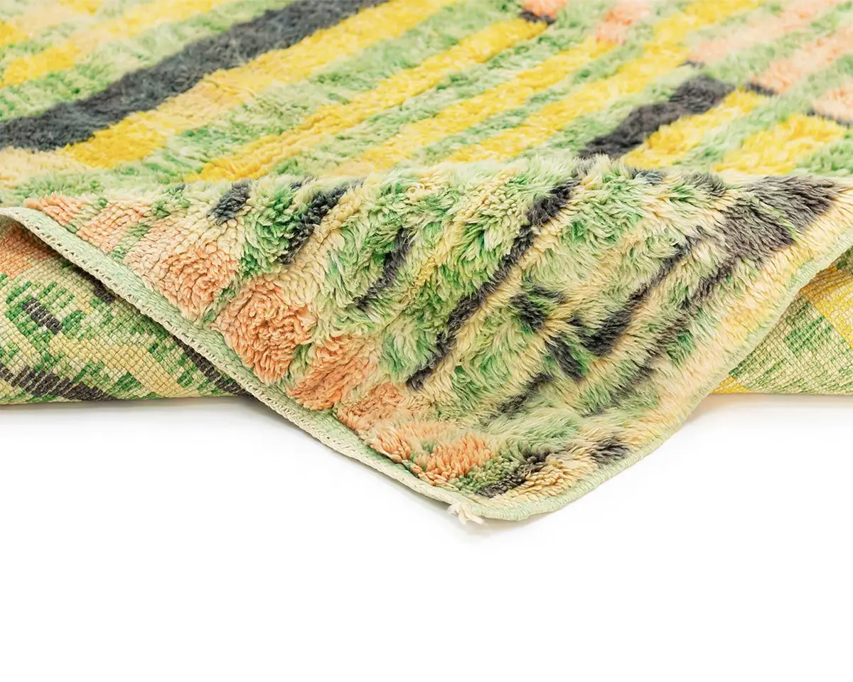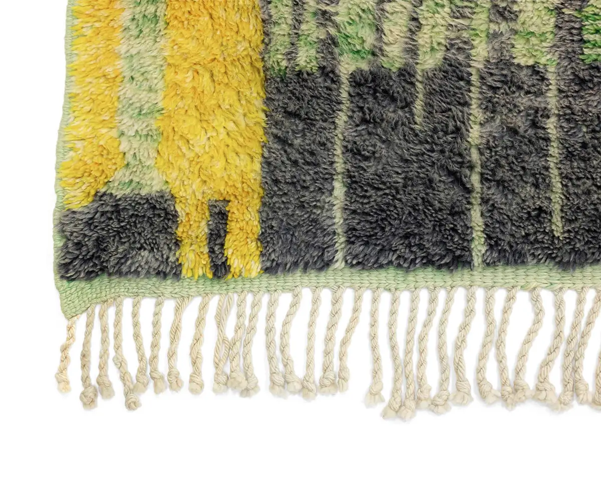 Exquisite hand-knotted rug, captivating with its vibrant pattern, harmoniously blending shades of Chartreuse Yellow, Charcoal Gray, Desert Rose, and Avocado Green. Perfect for infusing a burst of color and texture into any living space.
