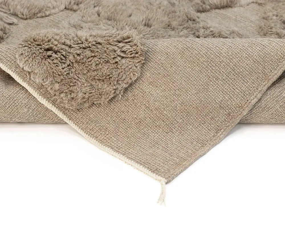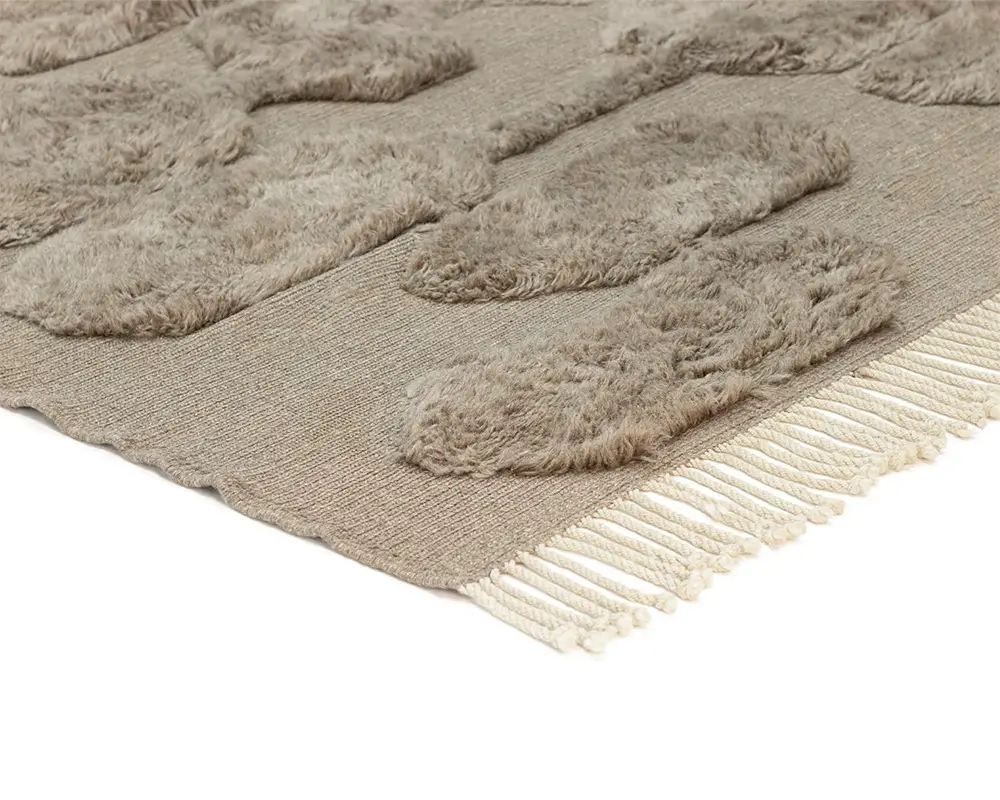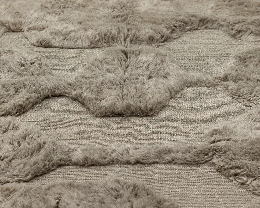 Modern Desert Taupe hand-knotted wool rug showcasing varied shapes for a unique textured look. Ideal to enhance the look of a living area or an office. This modern and contemporary design offers both durability and aesthetic appeal.