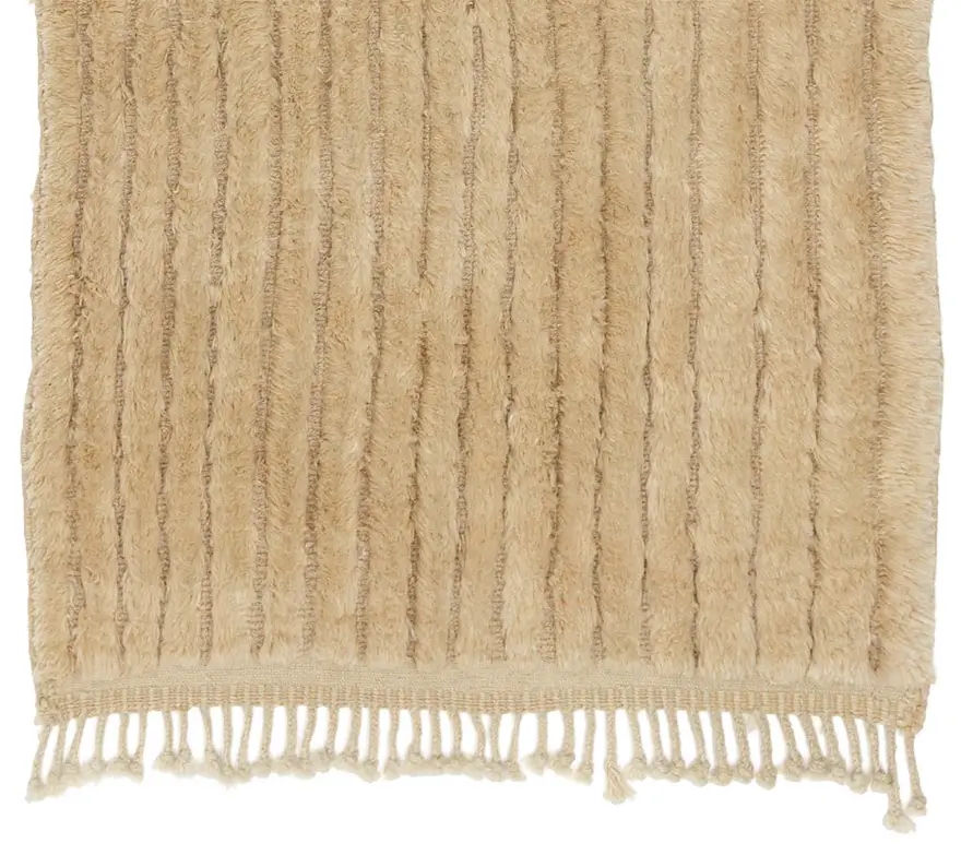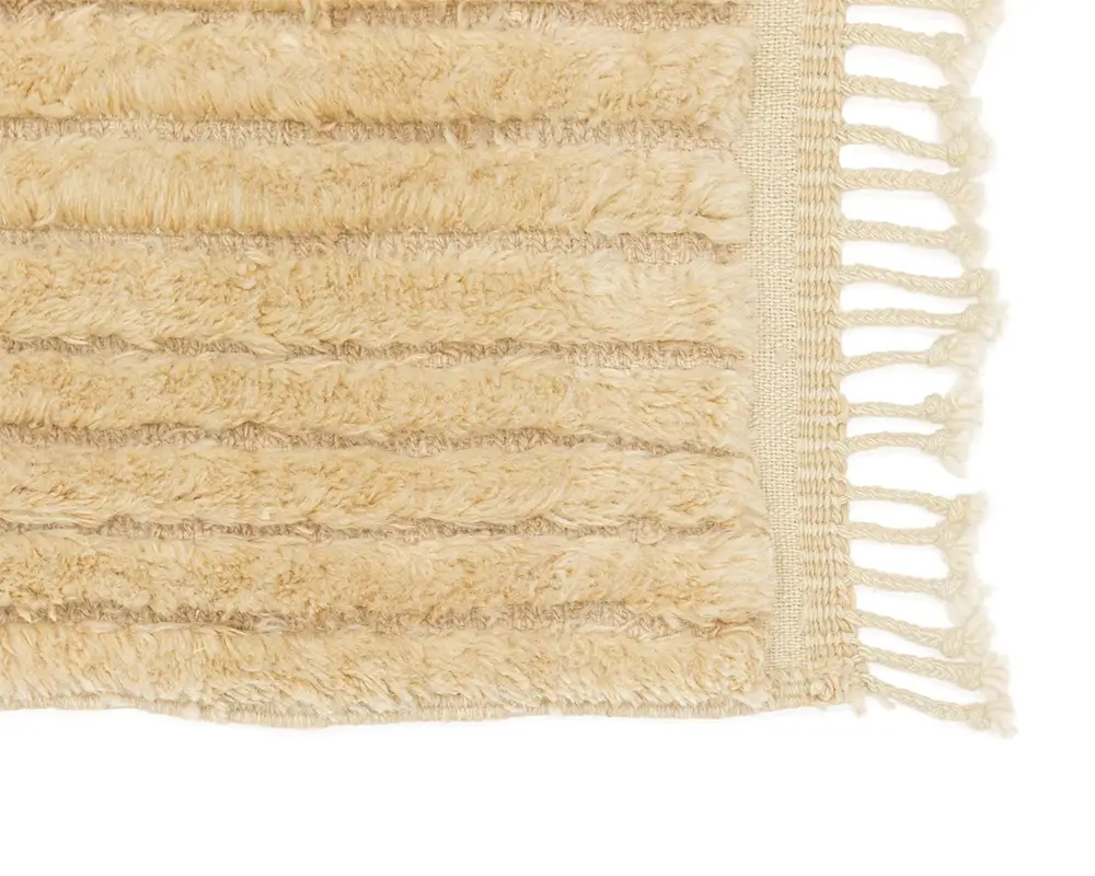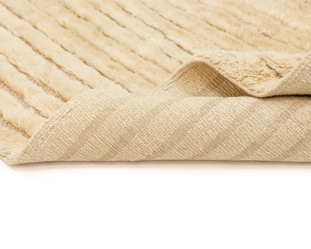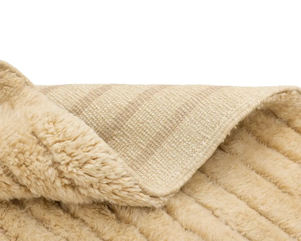 Textural hand-knotted wool rug in rich Fawn, featuring a rhythmic vertical ribbed pattern that enhances its tactile appeal. The subtle tonal variations and rich depth bring warmth and sophistication, making it a timeless accent for any space.