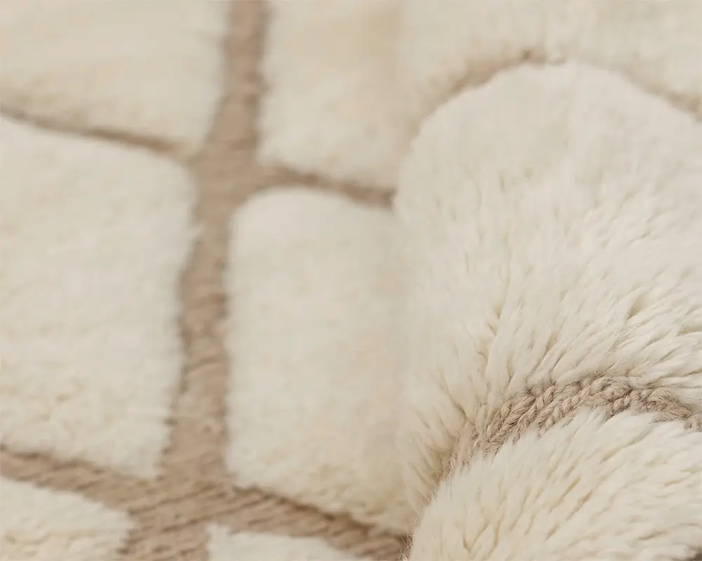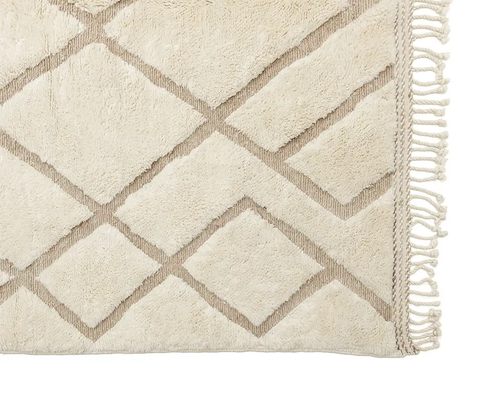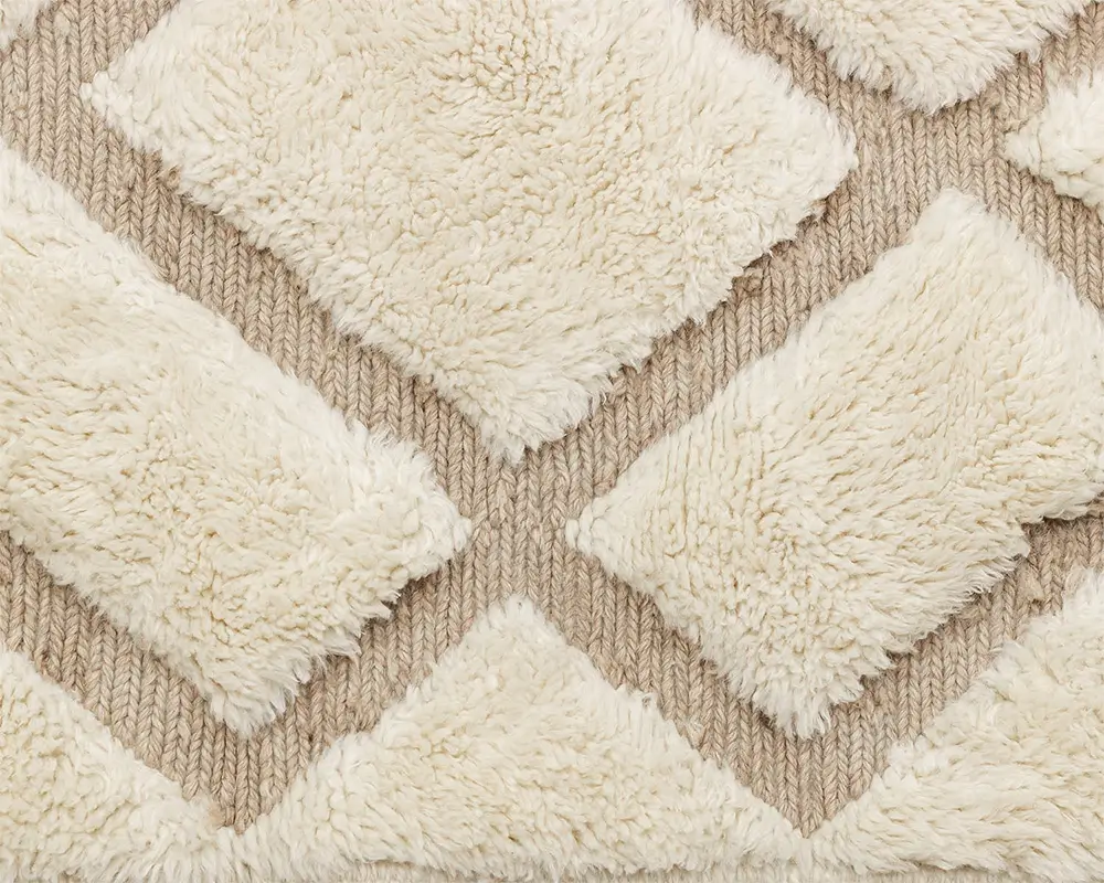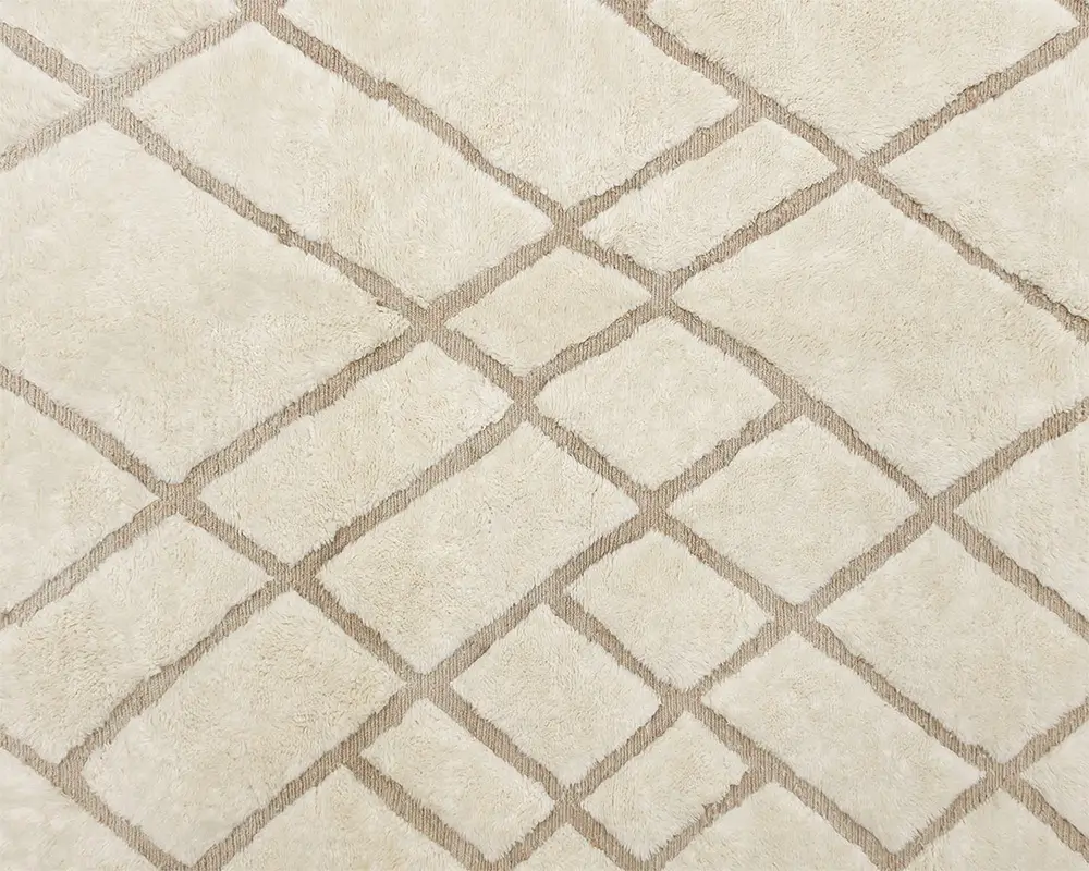 Elegant hand-knotted wool rug featuring a handwoven diamond pattern in Light Taupe on a luxurious Ivory base, merging timeless design with contemporary appeal.