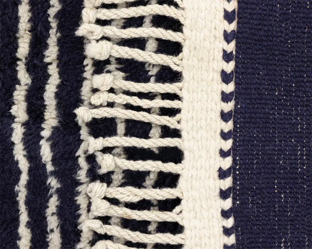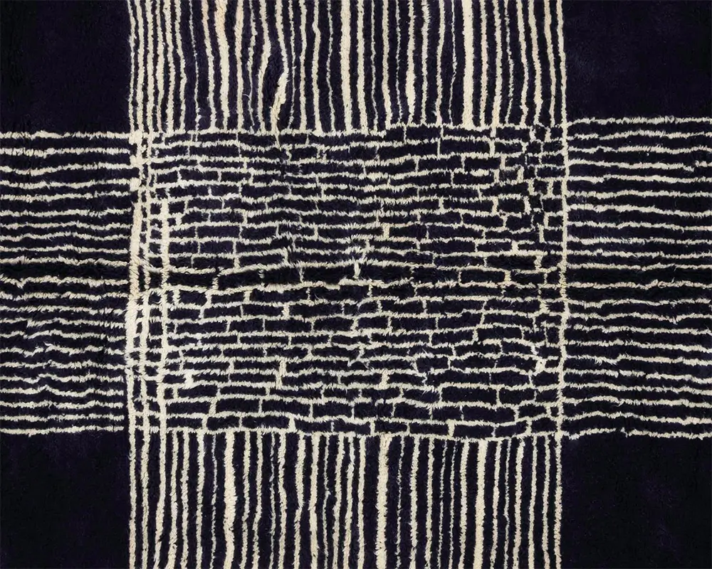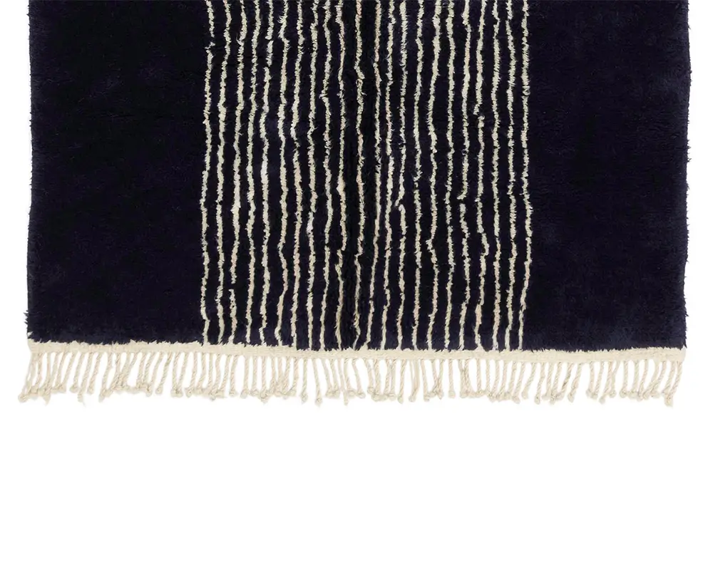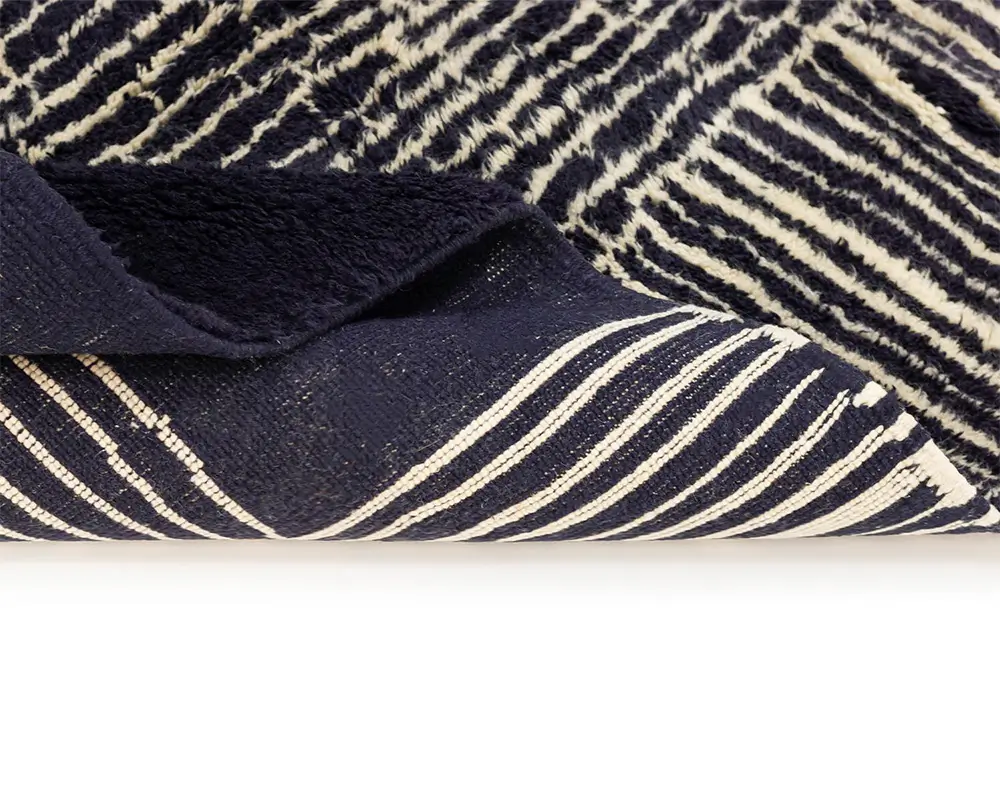 Contemporary Hand-knotted wool rug with a bold contrast of dark night Blue and Ivory, featuring abstract line work for a modern and sophisticated aesthetic.