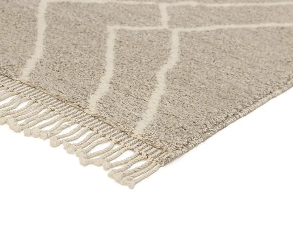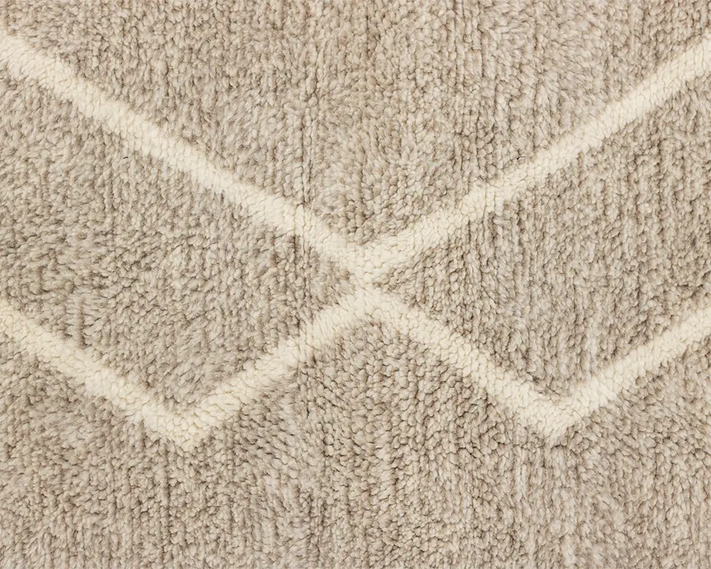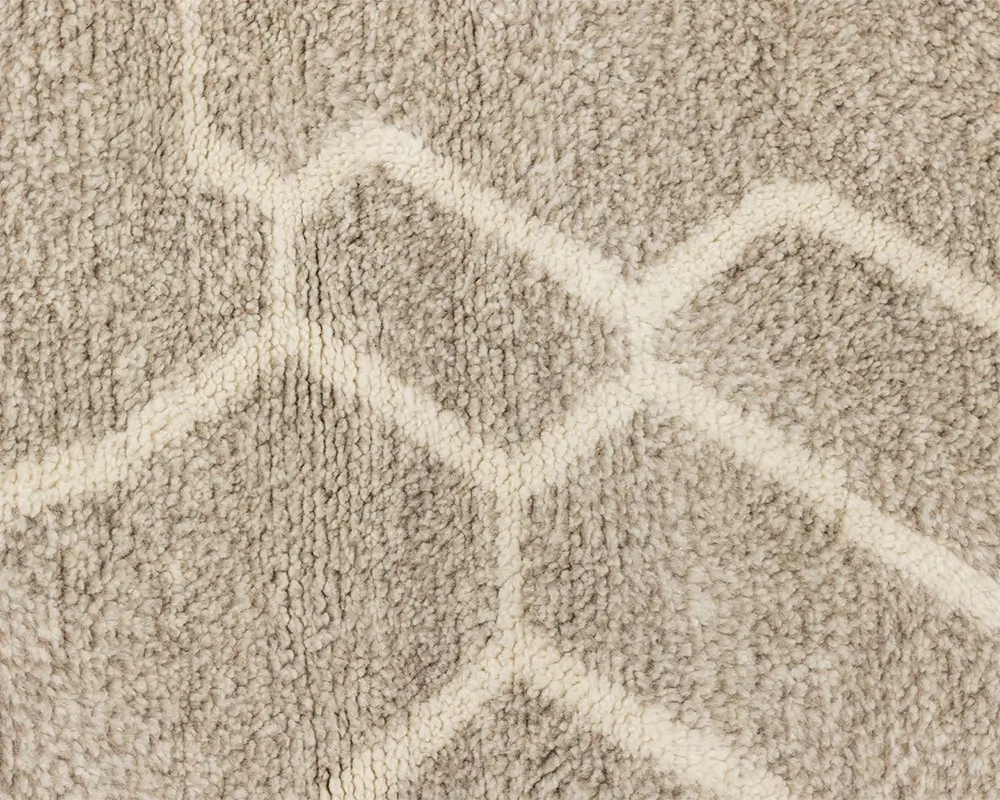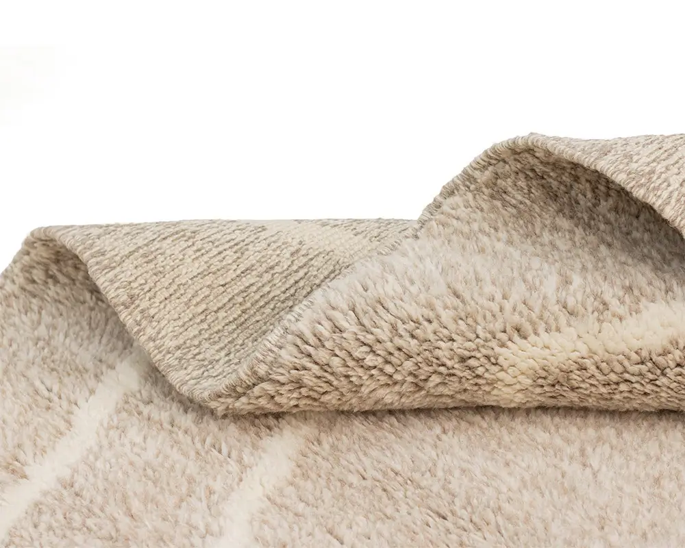 Sophisticated hand-knotted rug featuring a minimalist Sandstone hue with contrasting Ivory linear accents, a timeless design offering elegant versatility for any room or decor style.